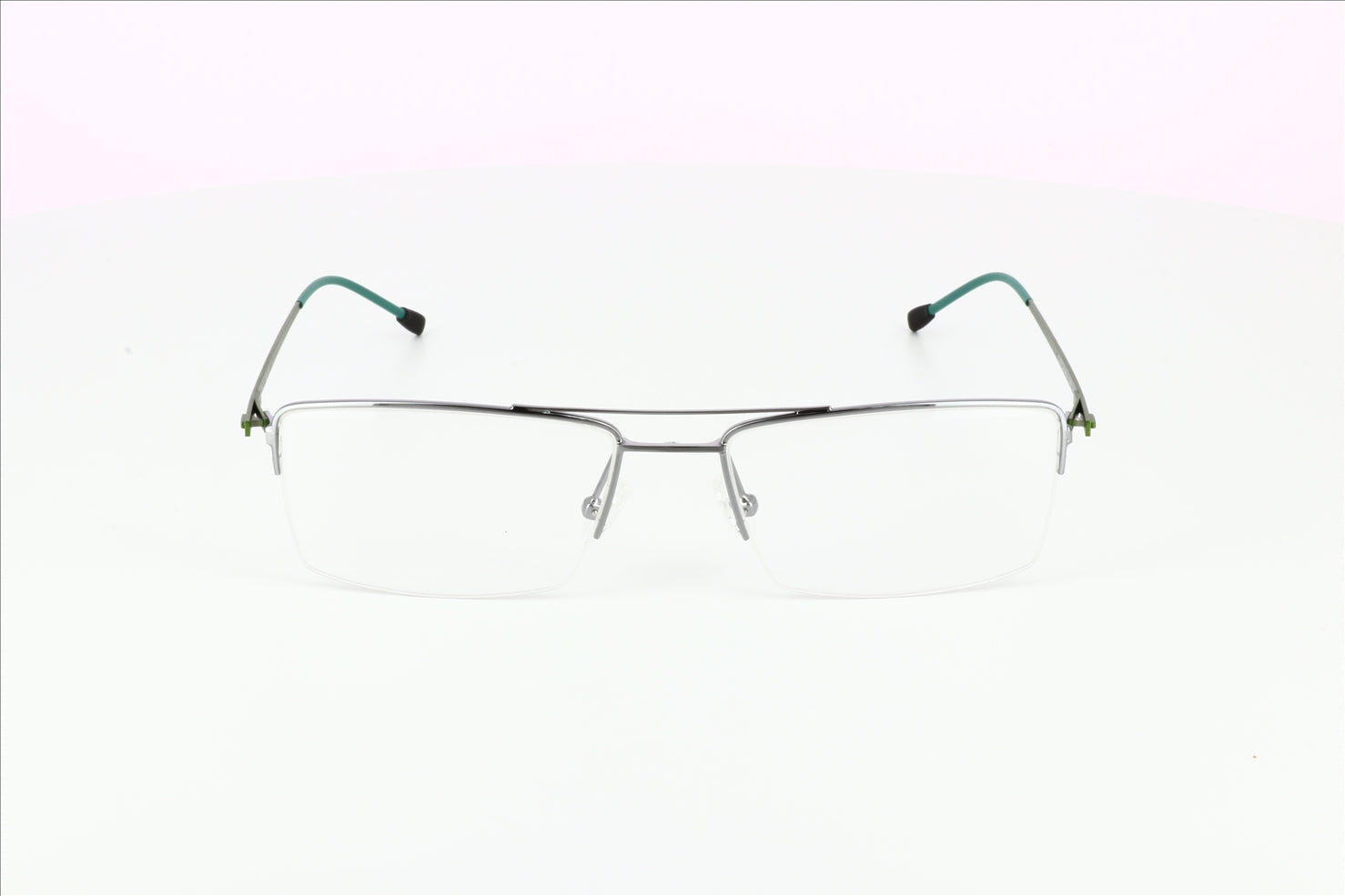 THEODORE is a semi-rimless eyeglasses are high quality rectangle frames with a sophisticated and elegant semi-rimless design. The sharp rectangle lenses of these frames are nicely emphasized by a silicone nose pad / bridge up front and durable metal temples on the sides. These metal frames are compatible with a wide range of lenses.